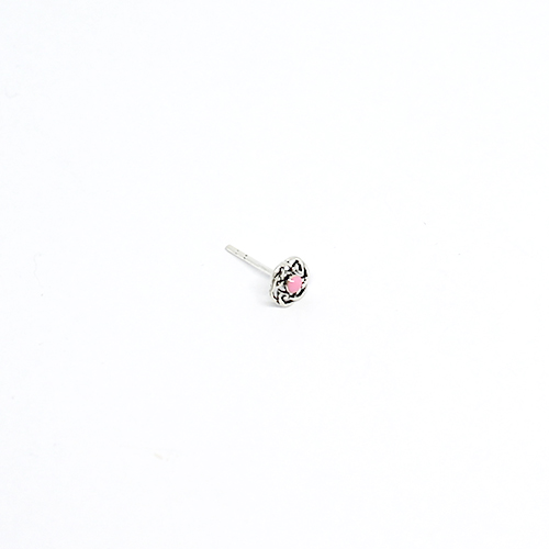 Brinco de prata 925, com moldura trabalhada e pedra no centro, diâmetro 6 mm. Várias cores disponíveis.