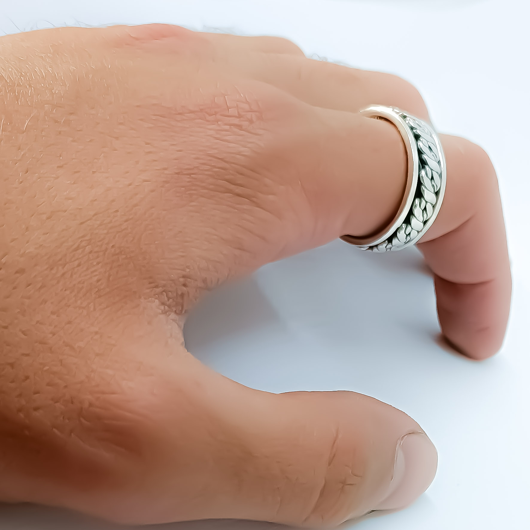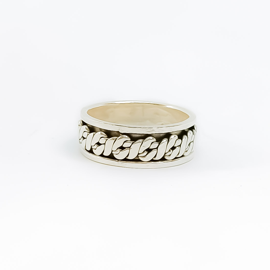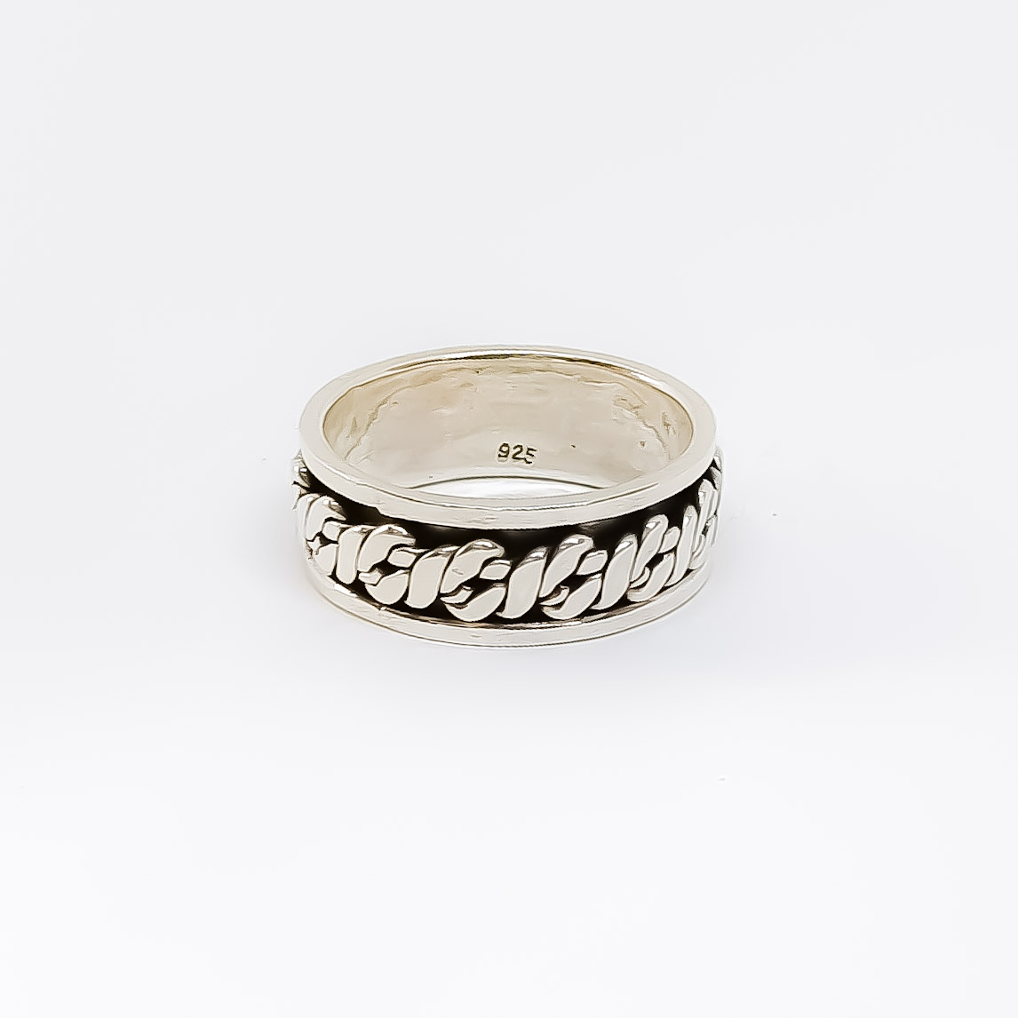 Aliança de prata 925, com 9mm de largura, com faixa giratória ao centro, anti-stress. Vários tamanhos disponíveis.