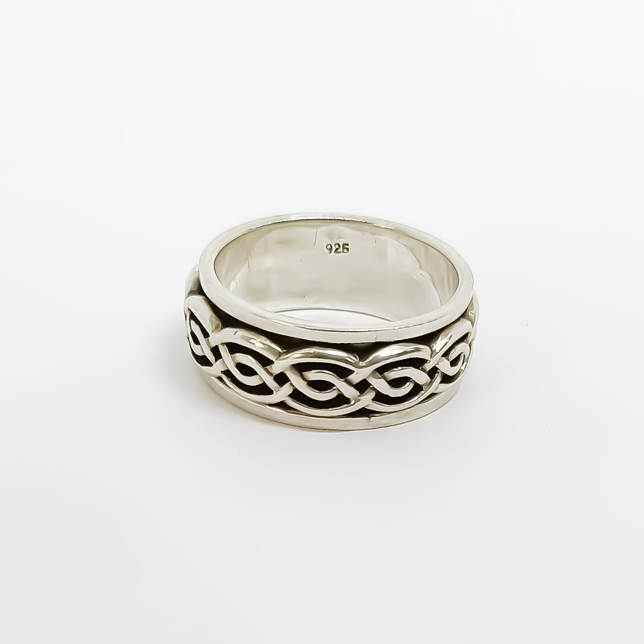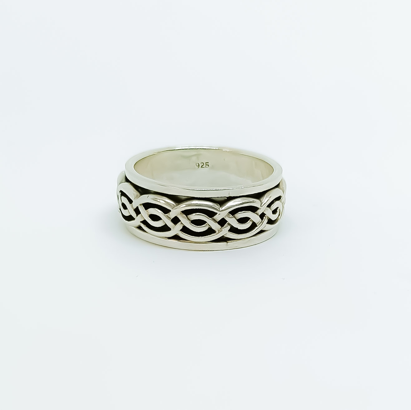 Aliança de prata 925, com 9mm de largura, com faixa giratória ao centro, anti-stress. Vários tamanhos disponíveis.