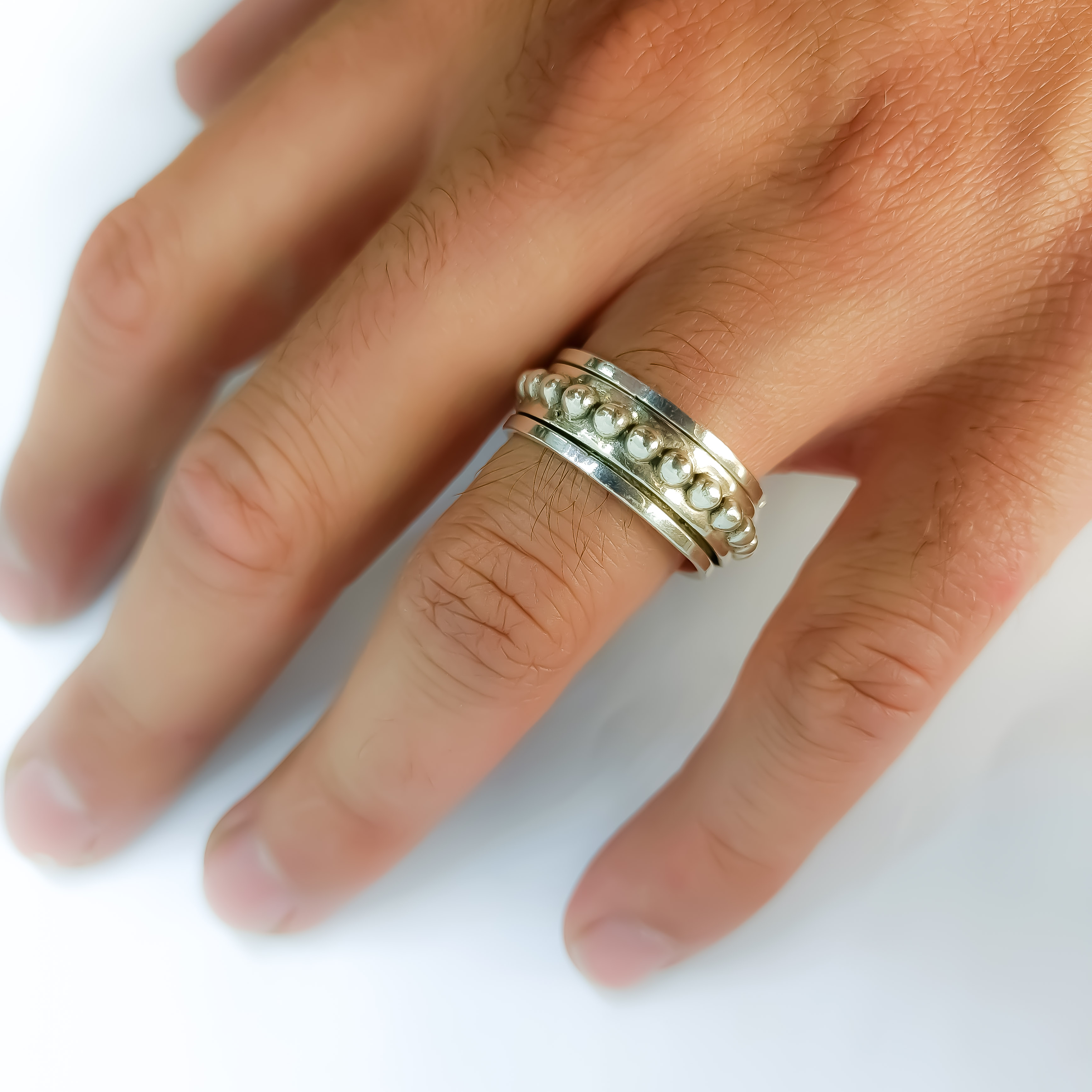 Aliança de prata 925, com 9mm de largura, com faixa giratória ao centro, anti-stress. Vários tamanhos disponíveis.