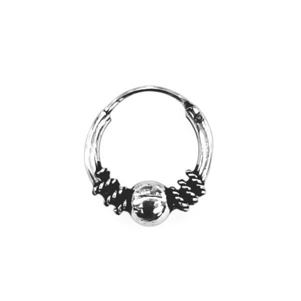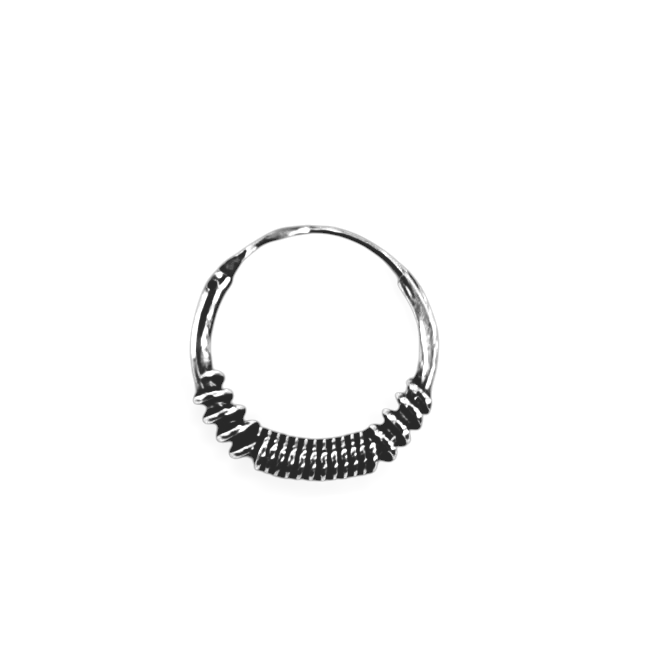 Argola trabalhada em prata de lei, diâmetro externo de 1.4 cm. Vários modelos disponíveis.