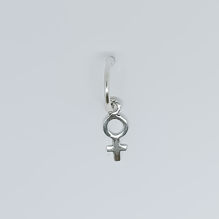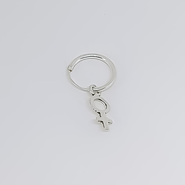 Sterling silver hoop ring with pendant, ring diameter 1 cm, pendant 1 cm high.