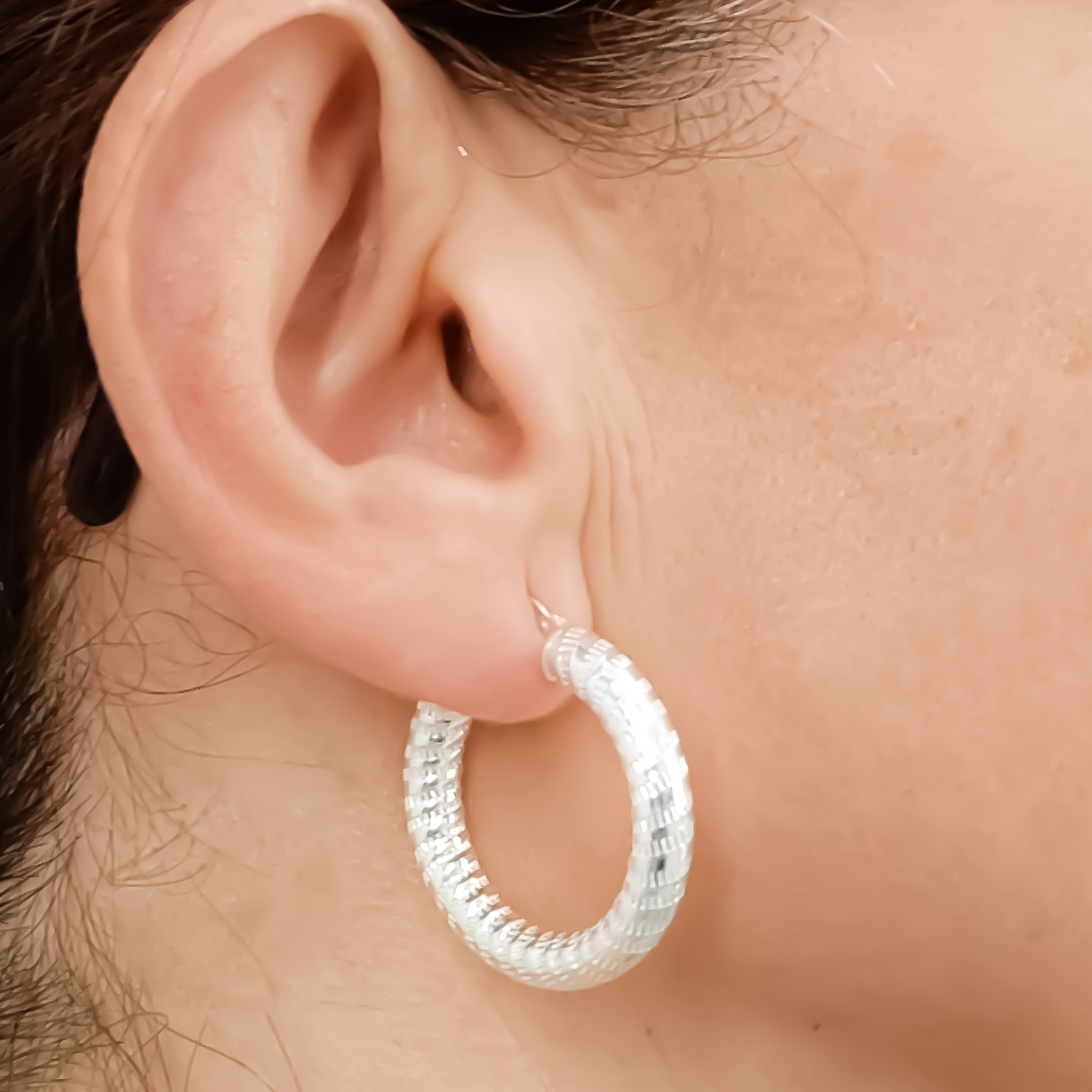 Argola de prata 925, toda riscadinha com 5 mm de grossura. Vários tamanhos disponíveis.