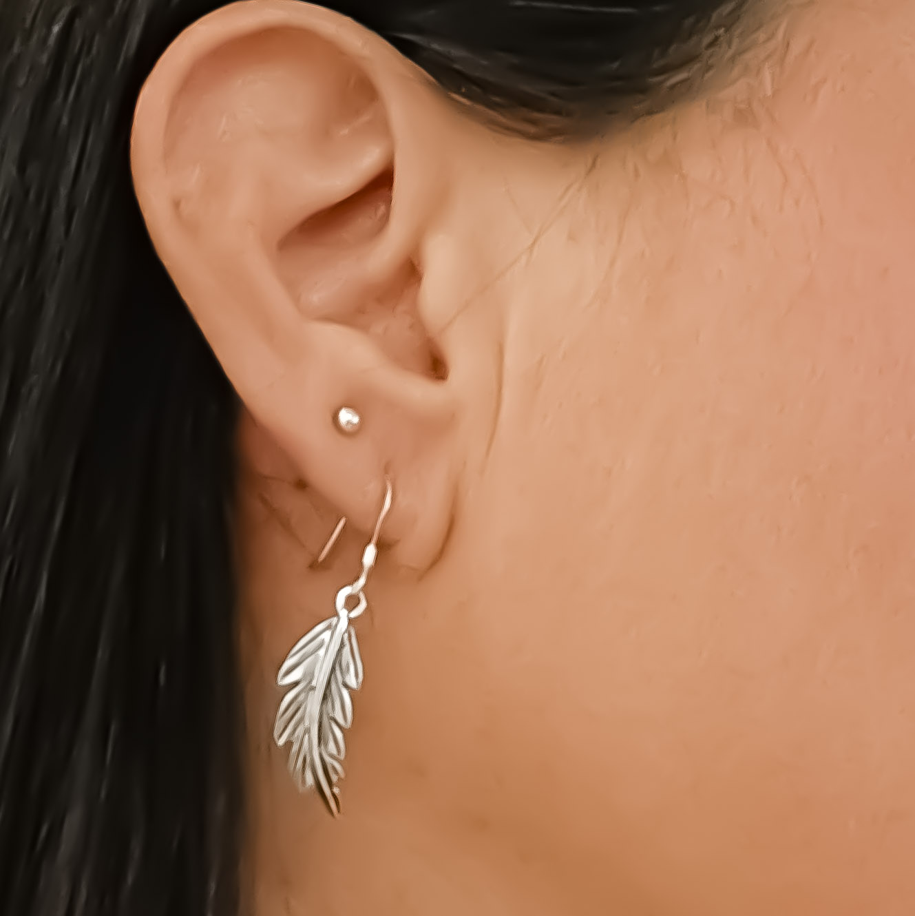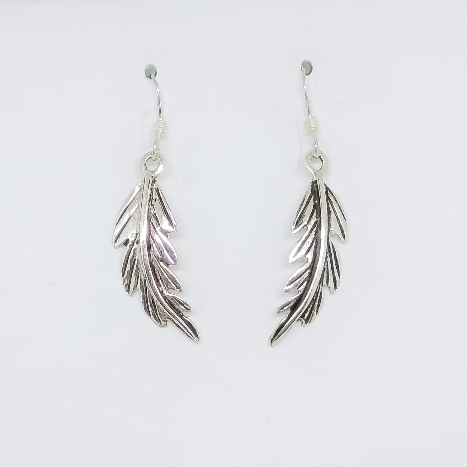 Hanging sterling silver earrings, 2.5 cm high by 0.8 cm wide.