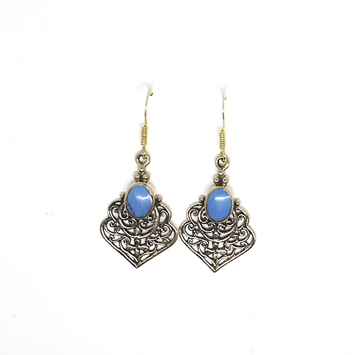 Hanging bronze earrings, 2.8 cm high by 1.8 cm wide.