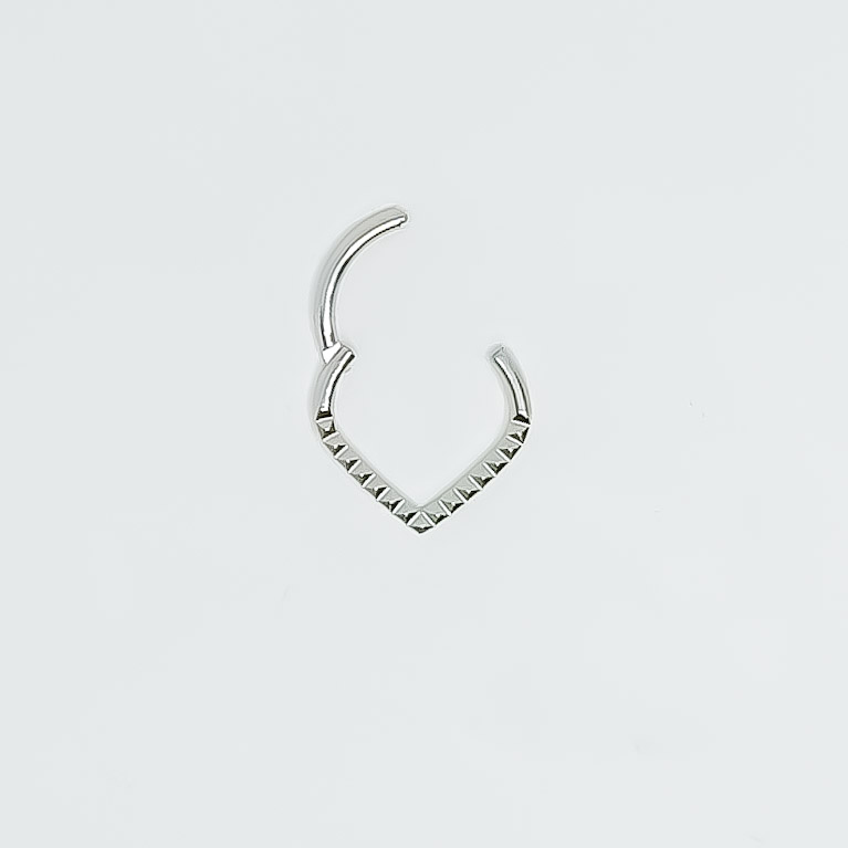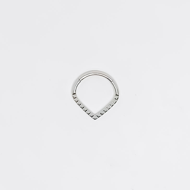 Argola para o septo de aço cirúrgico, com 1.2 mm de espessura e abertura fácil. Tem um acabamento facetado, que lhe confere um brilho discreto. Disponível em dois tamanhos.