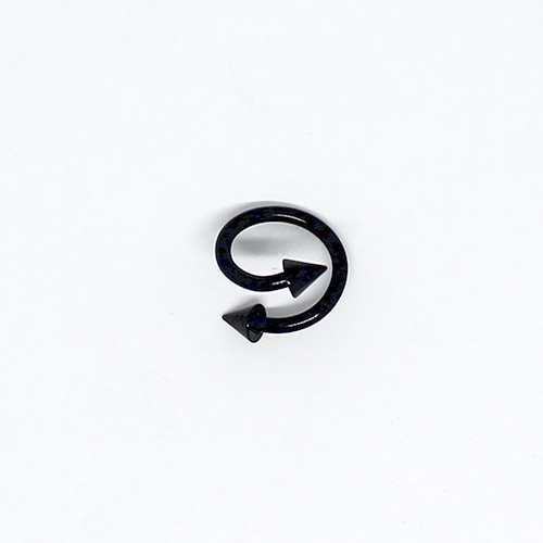 Piercing, espiral de aço cirúrgico preto com setas nas pontas. 1.2 mm de espessura.