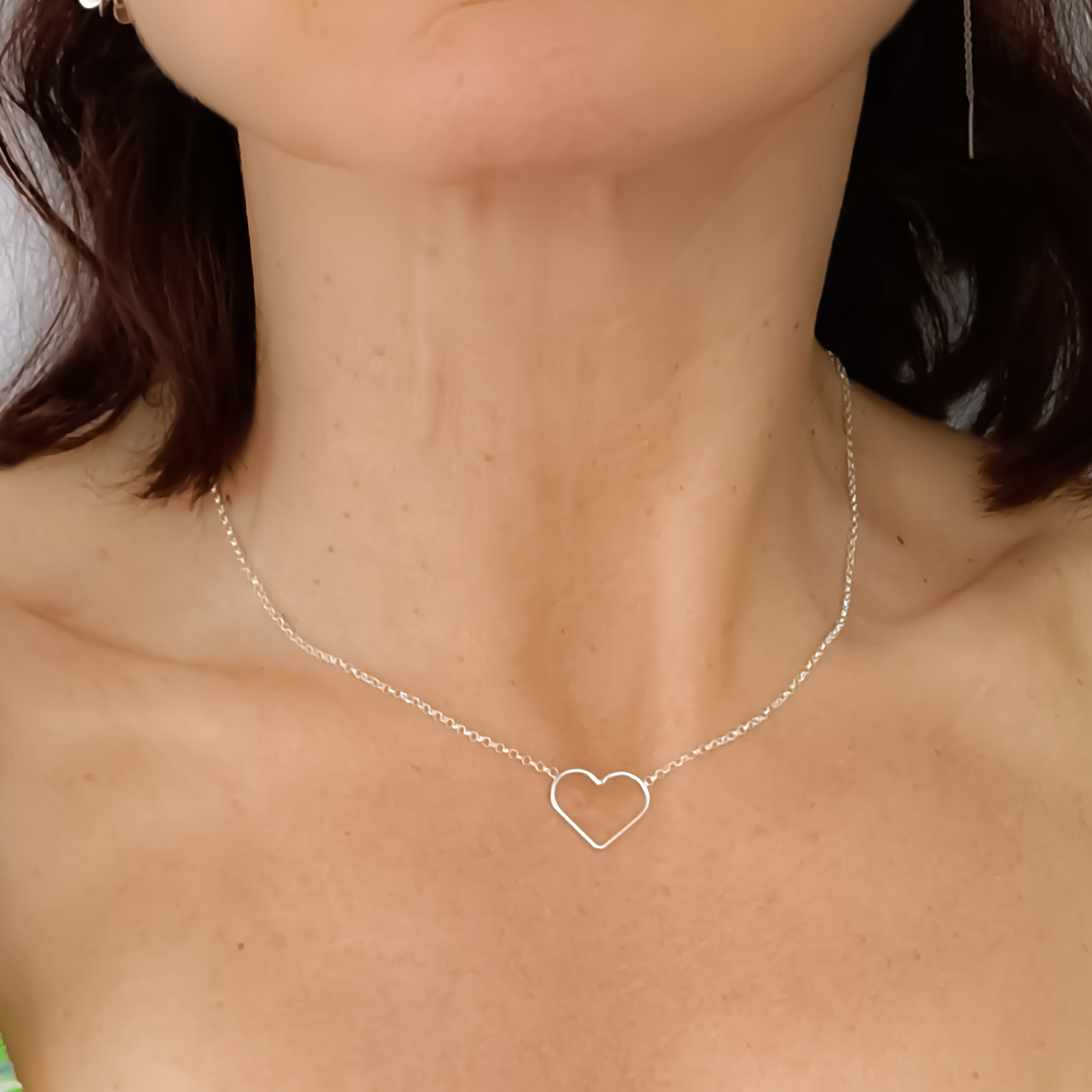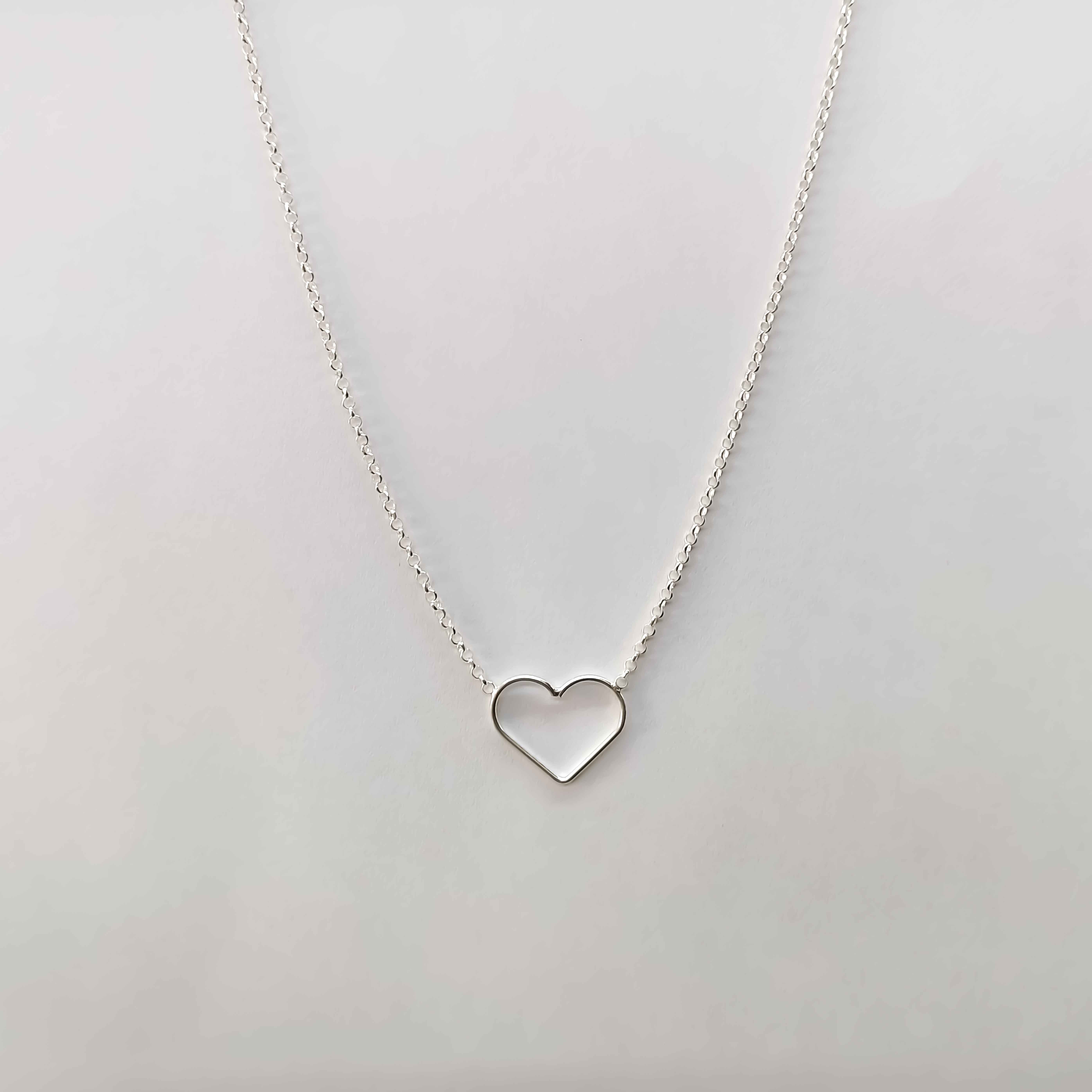 Fio de prata 925, corrente fina com um coração só centro.
